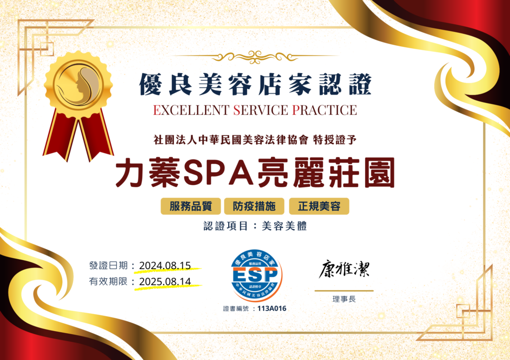 宛如美容界的 米其林 推薦!是由【中華民國美容法律協會】 頒發的優良美容店家認證。這個認證是定期更新的喔!